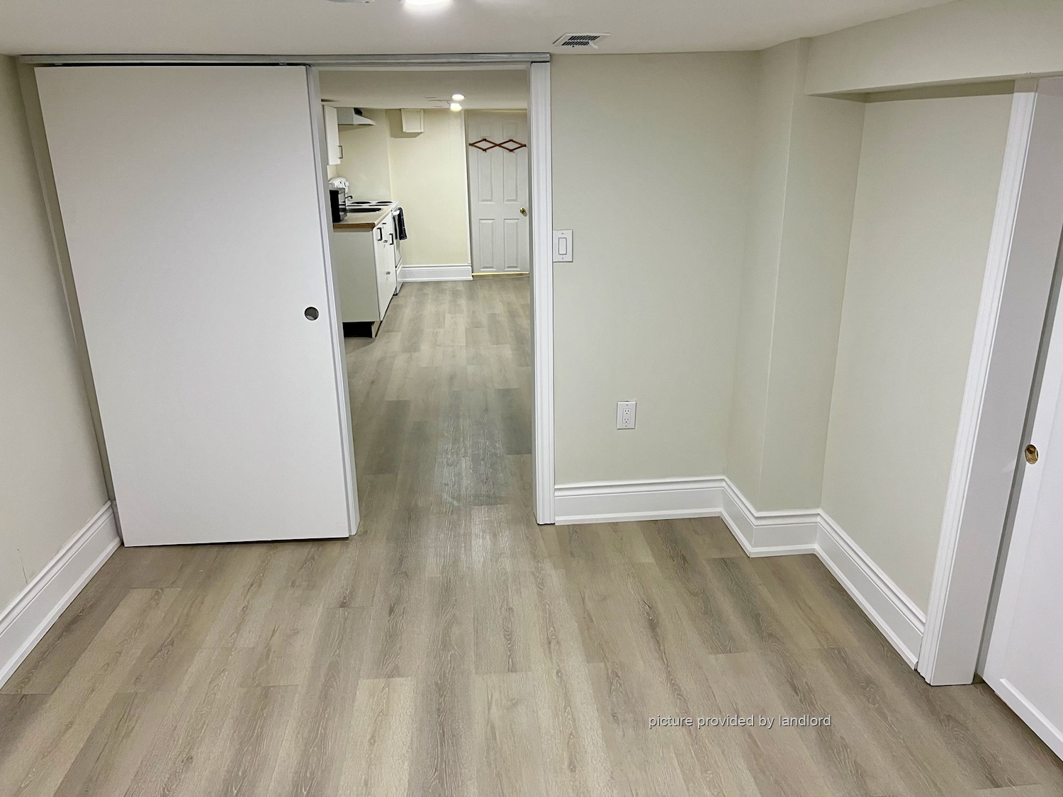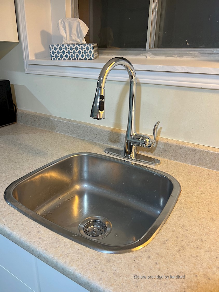 Apartment : Private entrance, 600 sq ft, 1 bed, 1 bath, with a large living area. Off the bedroom another 90 square foot room that can be used as an office, den or a large walk in closet. Laundry room with laundry sink, washer/dryer. Central Furnace/Air conditioning. Large backyard with sitting area. Yard and laundry shared with upstairs tenant.