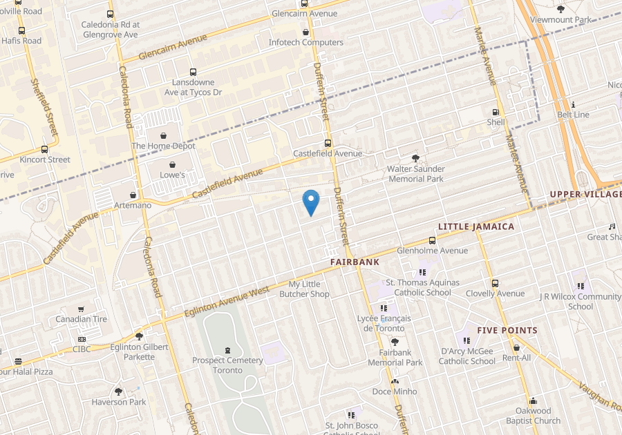 Area: Fairbank Village. Excellent walk and transit score, TTC, Eglinton Crosstown LRT (bus transit, subway and go train), mature neighbours, Yorkdale Mall shopping, and more.