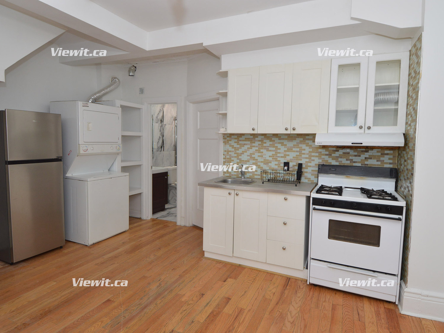Completely renovated, hardwood throughout, large bright eat-in kitchen, all new appliances, Gas Oven, in suite washer and dryer, main floor, private rear deck overlooking shared backyard. Street parking with permit can be available. No smoking. No pets.