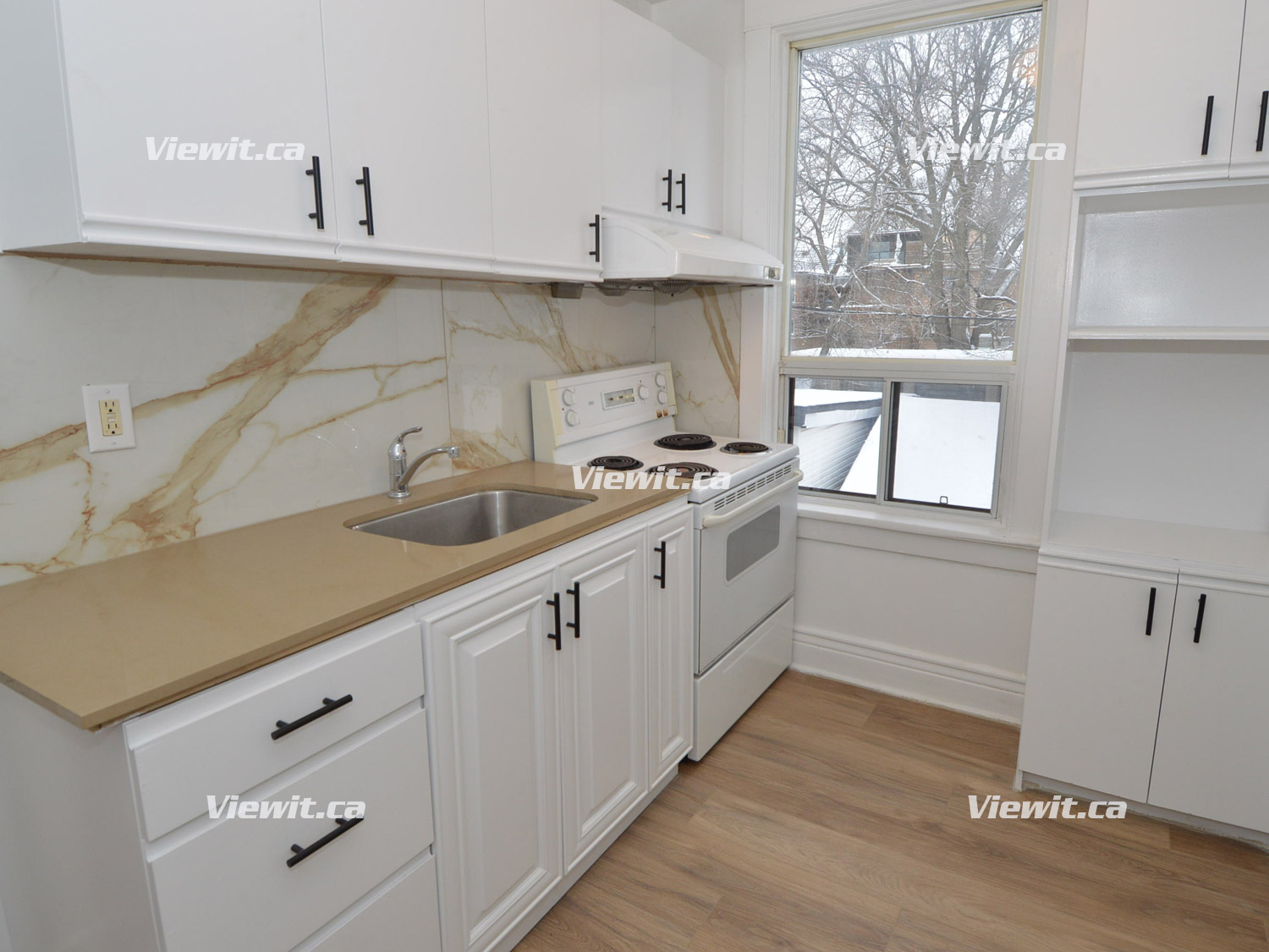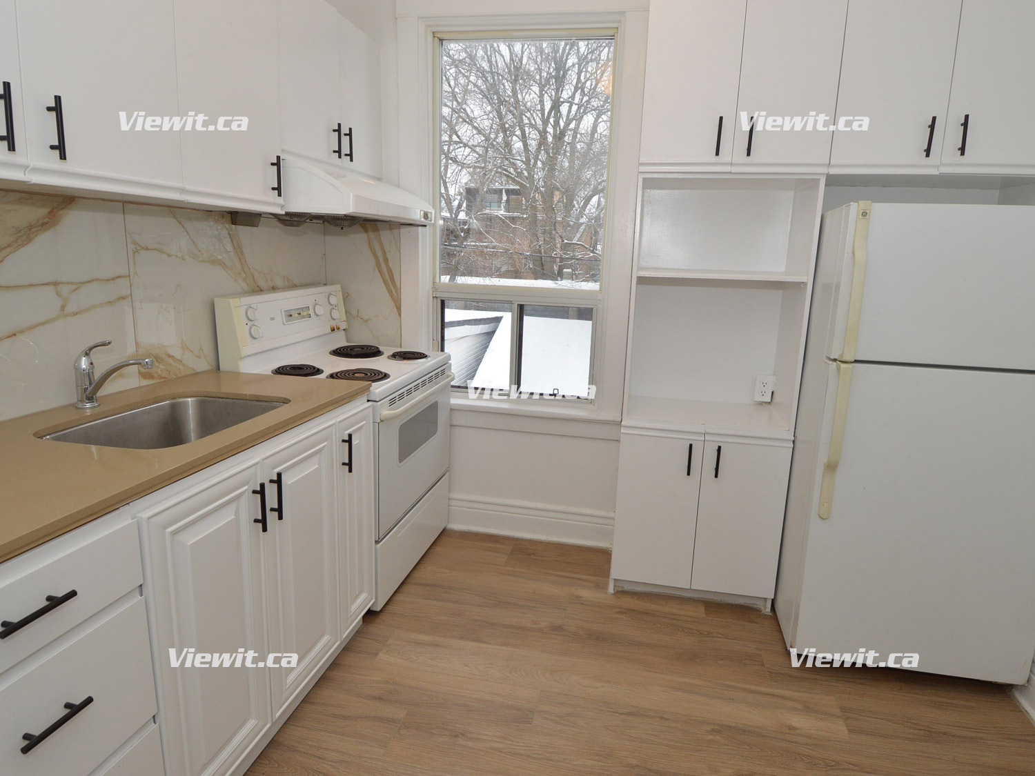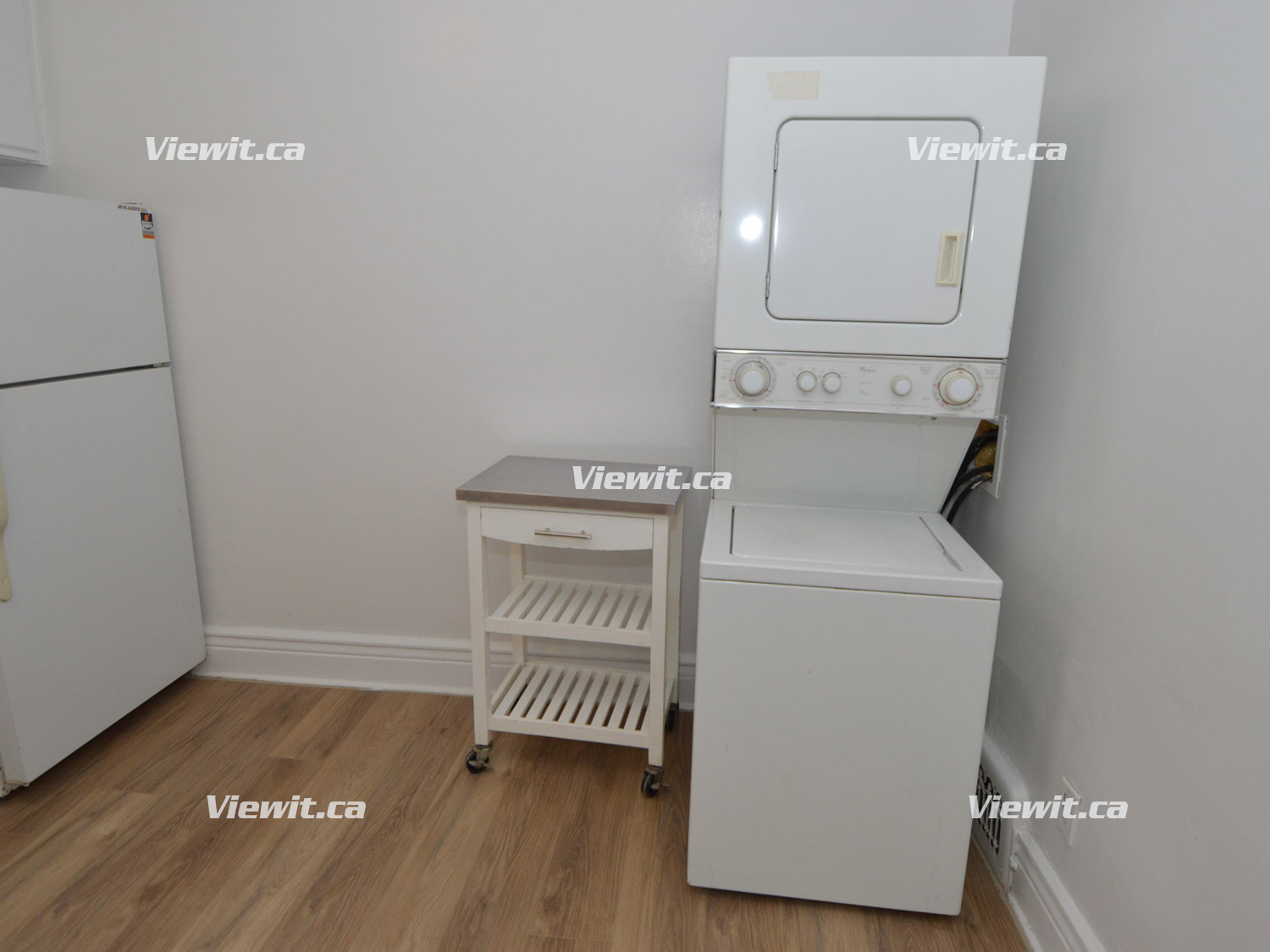 Newly renovated, very clean unit, hardwood floors, bright kitchen, in suite washer and dryer, large private rear deck overlooking shared backyard, large built-in wall unit in living room with plenty of storage.