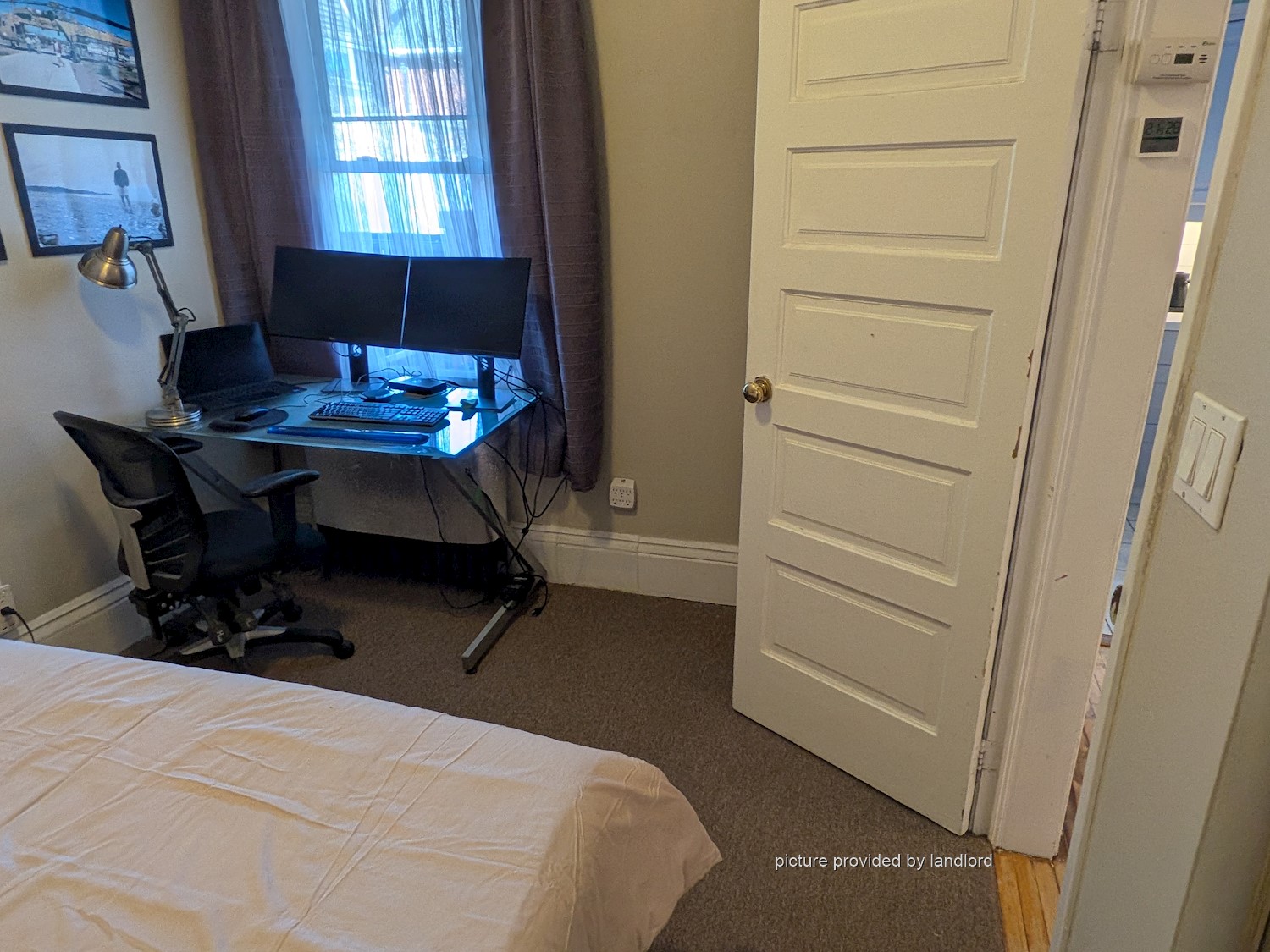 A sunny 1-bedroom in a century brick home on a quiet, tree-lined street. Step out to your own deck for BBQs and enjoy the calm of mature trees and nearby green spaces. Bright hardwood floors, cozy layout, and a private entrance- perfect for a single or couple who want comfort and character.