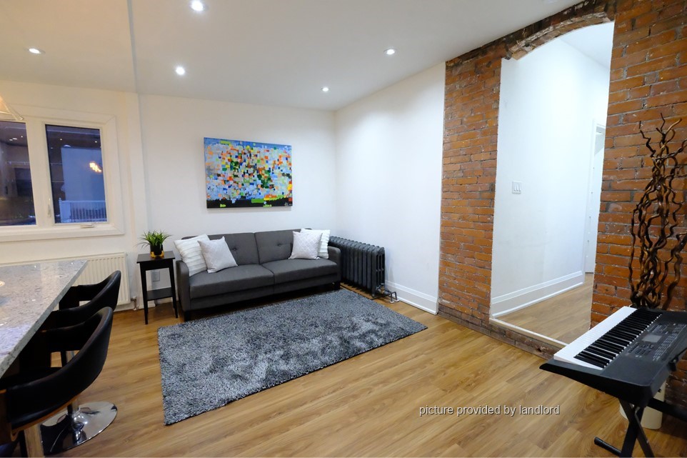Bright, fully renovated apartment with designer finishes, exposed brick, soaring ceilings, and a private deck. Bonus: Partially furnished: includes couch, beds, and bedside tables