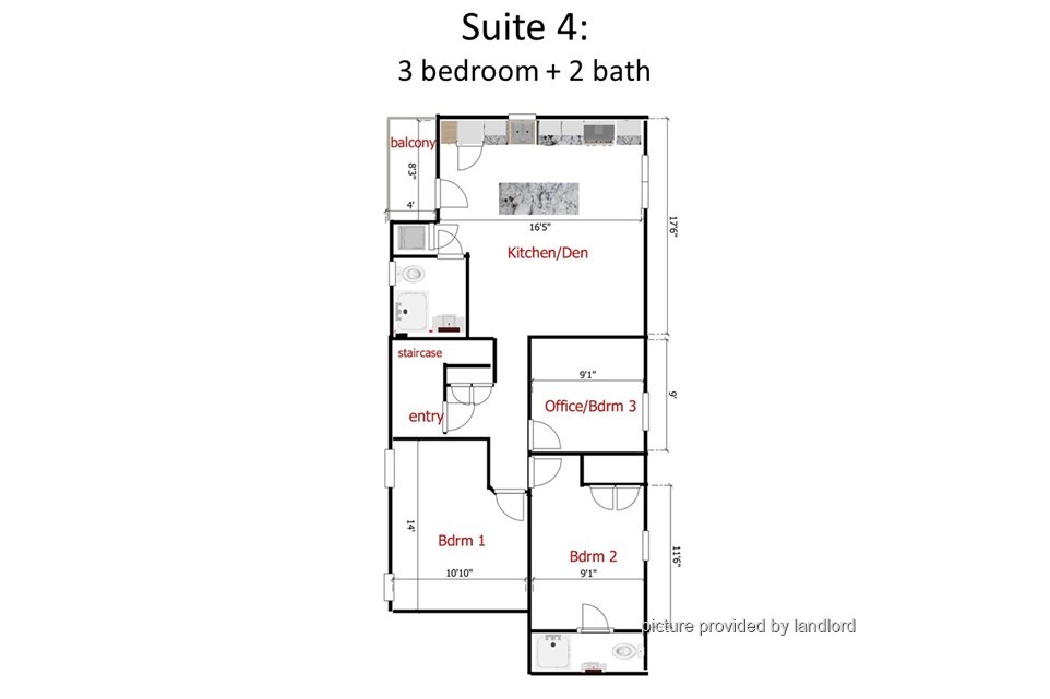 • All bedrooms fit a Queen bed (one ideal as office/den)