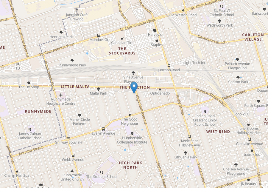 Amazing location: in the heart of the Junction, steps to transit, grocery stores, cafés, restaurants, and High Park.