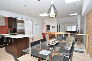 Really a one of a kind former 'owner suite' with top of the line finishes: Beautiful wide plank Ash flooring, top of line custom kitchen with Miele appliances, sub zero fridge. W/D, AC , soaring ceilings with 3 skylights, large private deck for entertaining. Garage Parking available for $ 150/month extra.