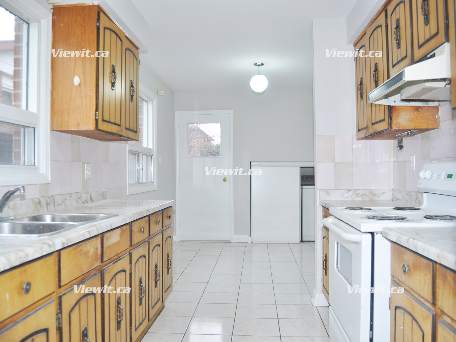 spacious living room and family room with a walkout to large backyard.
