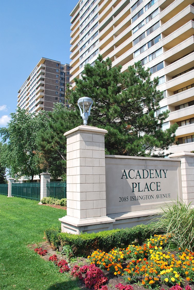 ACADEMY PLACE: Our rental office hours are Monday to Saturday 10 am - 5 pm. ACADEMY PLACE - Jr. 1 bedrooms with storage & rents from $1725. World class exercise facilities with indoor pool and outdoor patio, squash court, sauna, tennis courts & basketball. 3 appliances including dishwasher. Laundry on site. Spacious living with panoramic balcony views. European kitchens with window. Self controlled heating and air conditioning. For your convenience: on site tuck shop. Controlled entry, security patrols and video surveillance,. Three elevators in each tower. Right off highways 401, 427, 409 & 400. Bus stop at your door. Backs on to large park, with walking and cycling paths. Utilities included. Freshly painted prior to move in. Parking available for $85/month. Lockers available for $25/mn. Call for more details. Part of the Certified Rental Building Program. To learn more about this program, Visit www.crbprogram.org