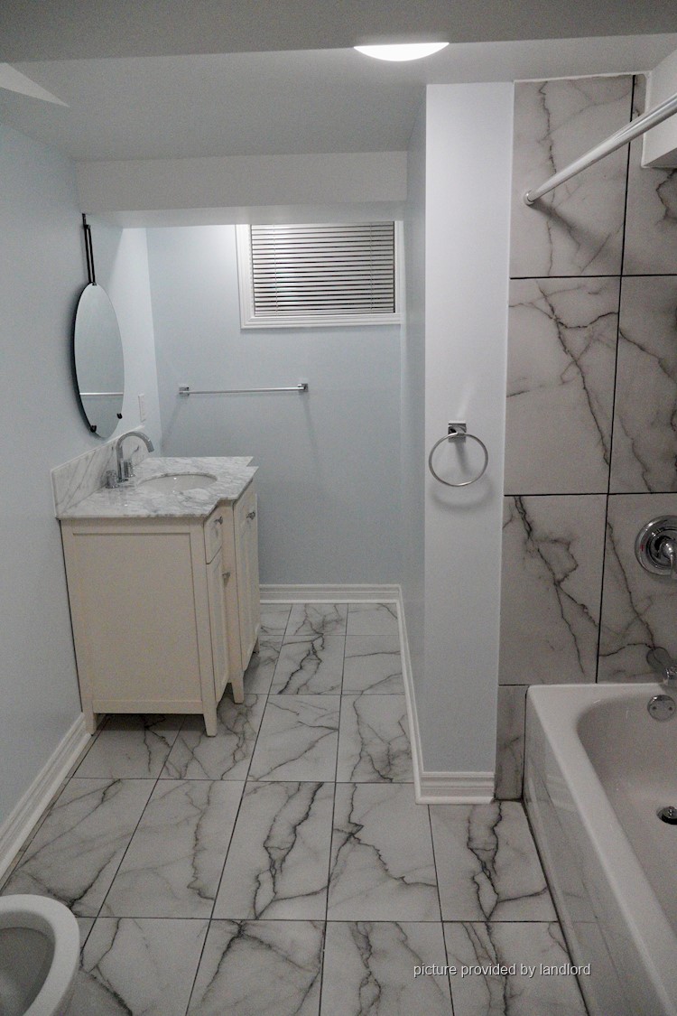 Newly Renovated 1 Bedroom Basement Apartment w/parking & laundry, 5 minutes to Go Train or to 1 Bus to Subway. Shared Laundry Room w/above, 40% of Utilities. Non smoker, no pets. Contact for Open House viewing times. Available May 1st.