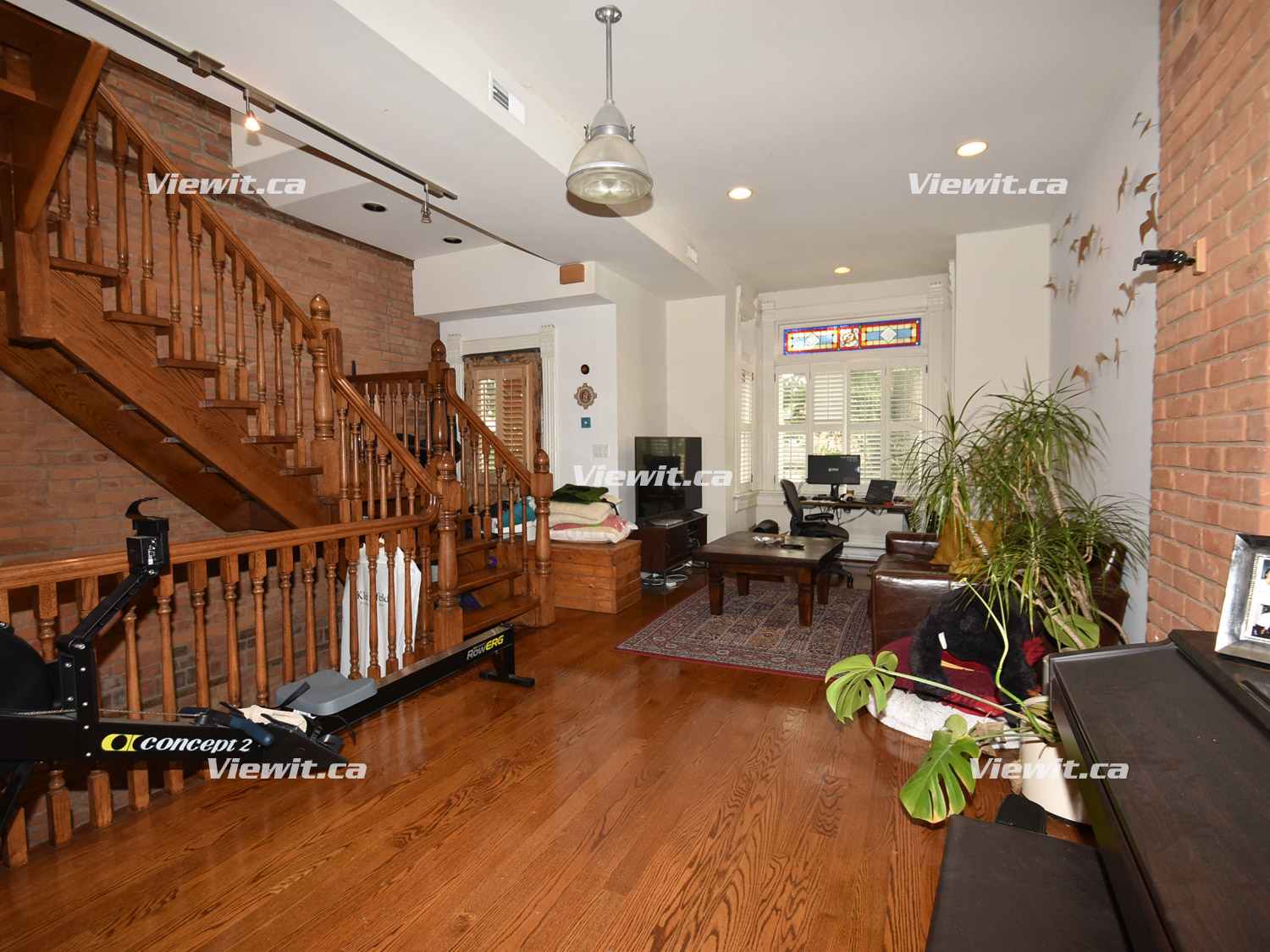 two bedrooms, two bath, two levels, high ceilings, large living room, hardwood