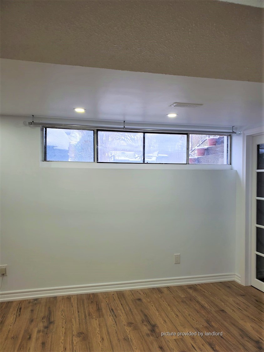 Renovated throughout! One Bedroom + 1 washroom. Separate entrances. Kitchen and living area open concept. Appliances, fridge and stove. New washroom, and new fixtures. Laminate and ceramic tiles throughout, lots of natural light. Shared laundry, central Air conditioning and heating. Shared back yard. Parking may be available.