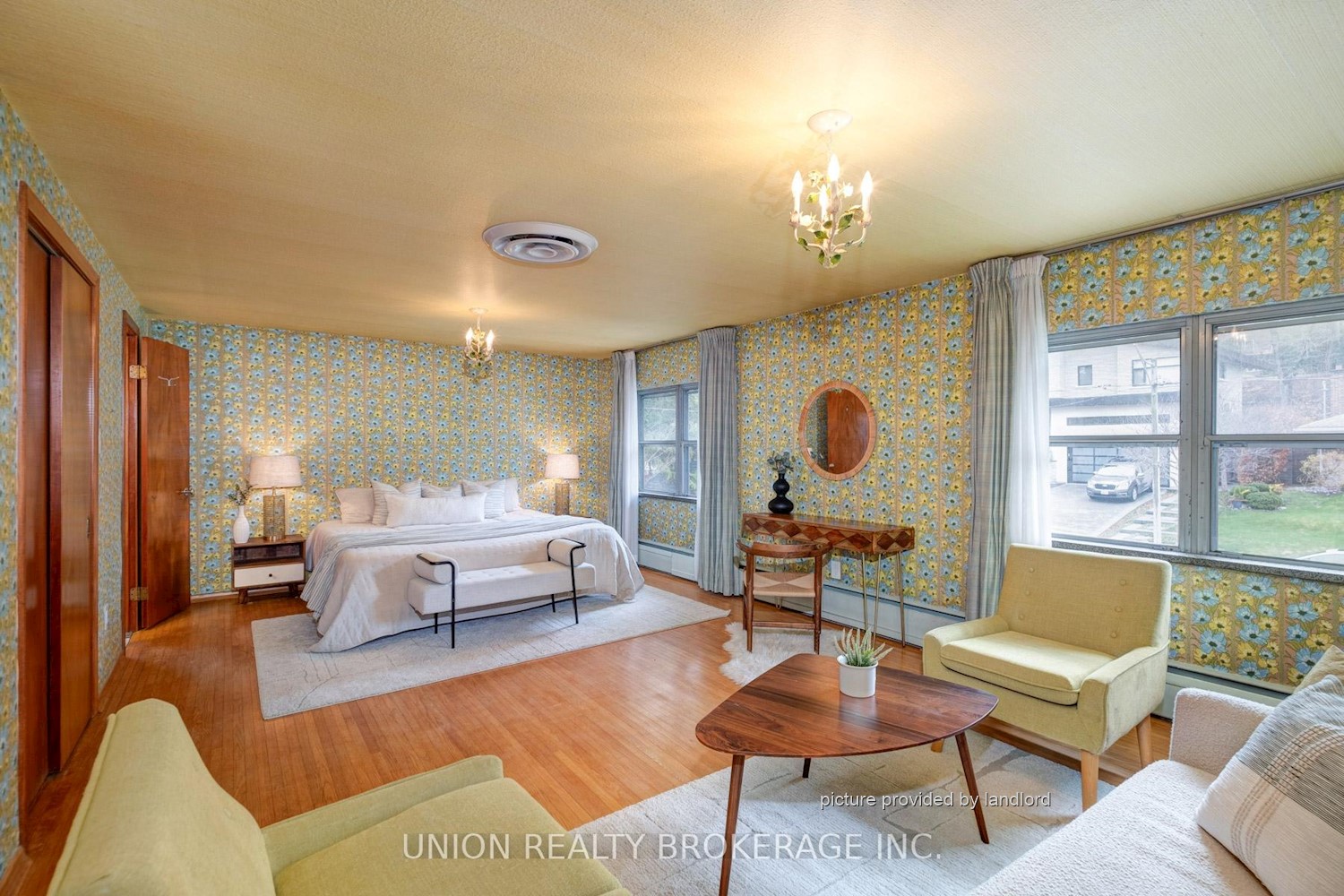 primary suite boasting a retro ensuite and dual closets, while two additional