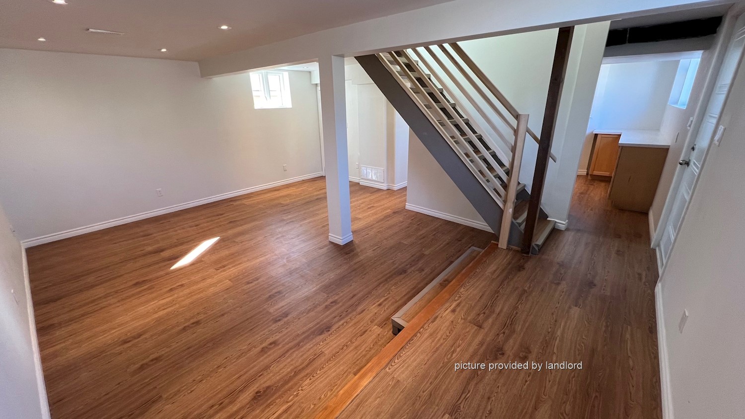 Two bedrooms upstairs, and a large open living/dining room on the main level.
