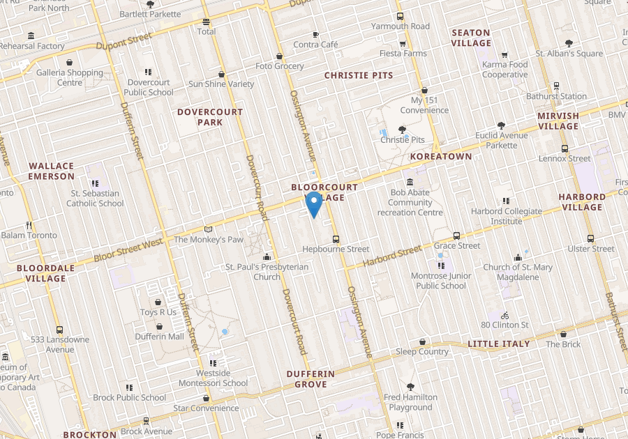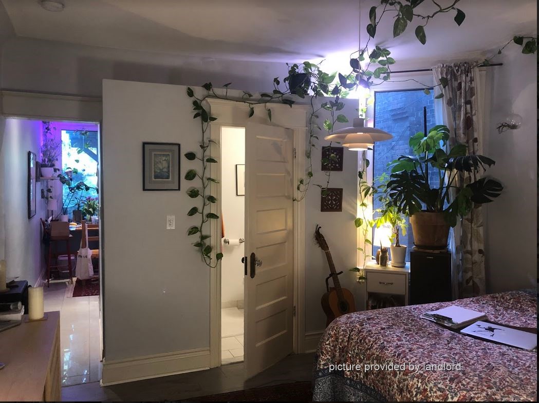 Beautiful one-bedroom apartment, a block west of Ossington and just south of Bloor. On a quiet side-street, but just steps to Ossington subway. Lovely front yard. *Big* back yard. Spacious back deck. AC/central heating. Laundry in basement (free). Bike parking in front of the house. Available February 1 or March 1. Utilities included.