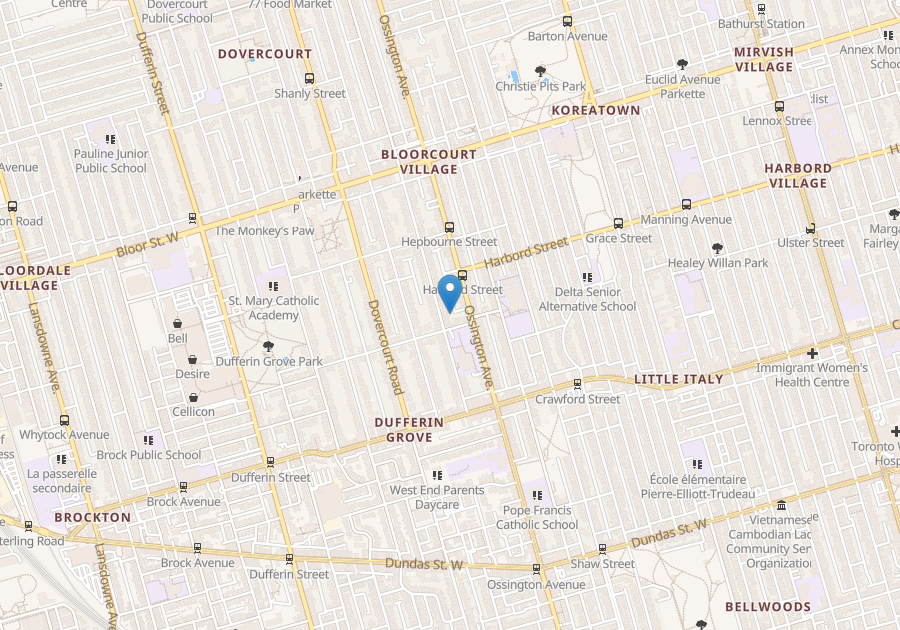 One of Toronto's most desired neighbourhoods (Little Italy): Walking distance to Ossington-Bloor line subway station, bus routes and College streetcar routes. Close to University of Toronto, shopping on Bloor and College Street; plenty of restaurants-eateries and cafes. Very close commute the the downtown core and all attractions, (20 minutes).