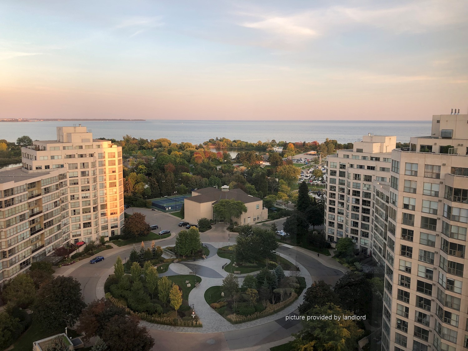 sunrise views of Lake Ontario and the CN Tower.