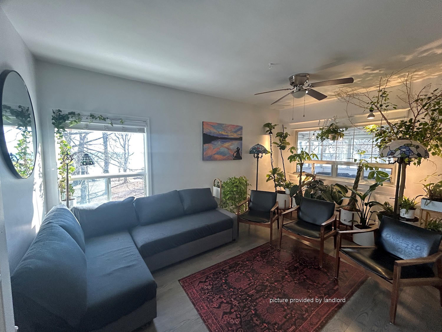 the second floor of a house. It has large windows that bring in tons of natural