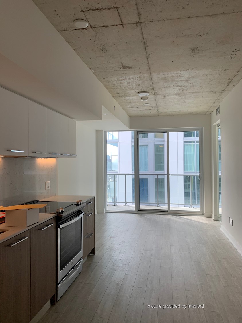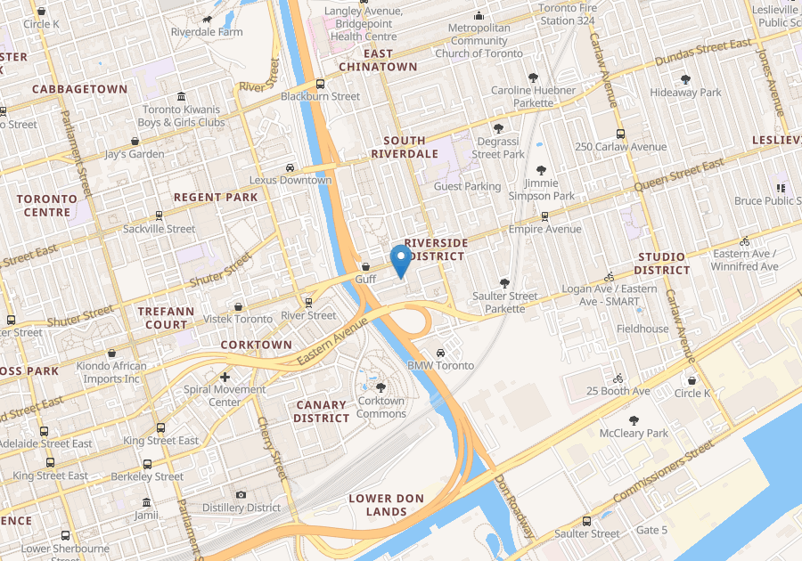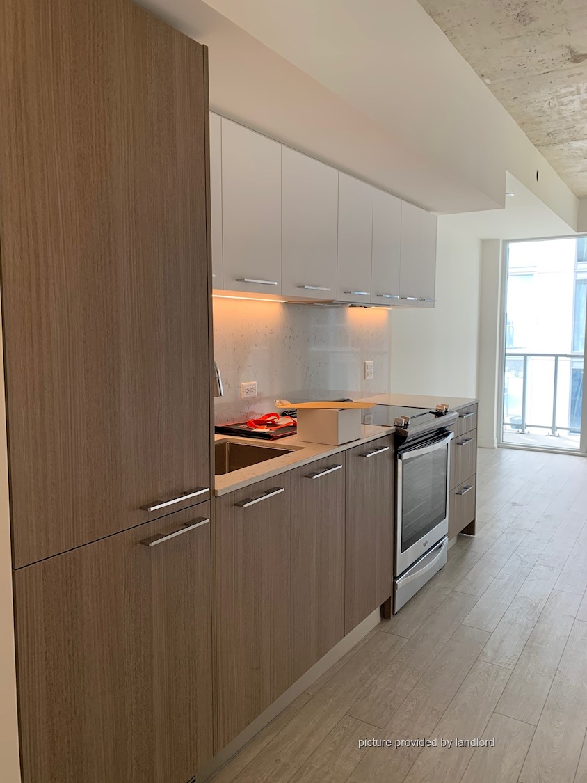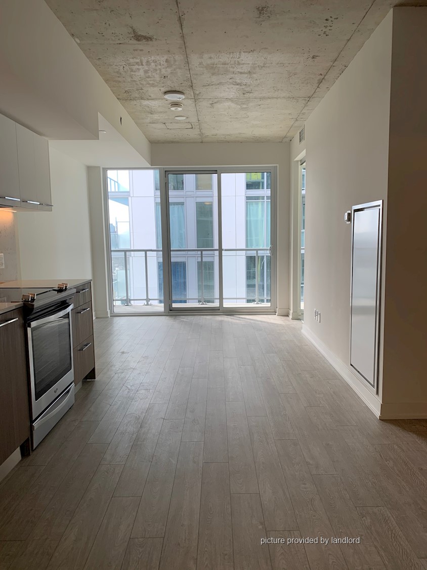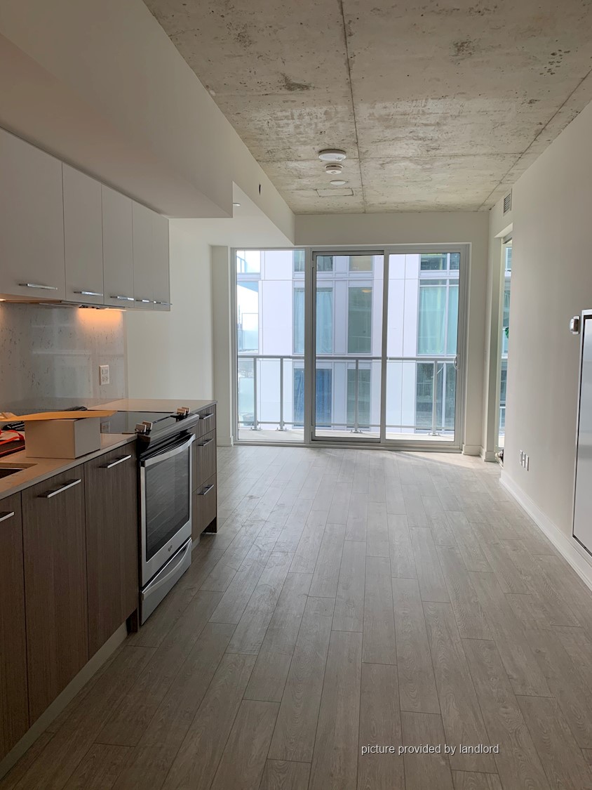 Welcome To Riverside Square! This Open-Concept Condo Boasts A Spacious Bedroom, A Modern Washroom, And Large Windows That Allow For Plenty Of Natural Light To Fill The Space. Enjoy A 50 Sq. Ft. Balcony And Exposed Concrete Ceilings, Adding A Touch Of Industrial Style To Your Home. The Sleek Kitchen Is Equipped With Built-In Appliances. As An Added Bonus, A Locker Is Included For Extra Storage. Located Conveniently By The DVP, You're Just A Short Walk Away From An Array Of Shops And Restaurants. With An Impressive 95 Walk Score, Getting Around The Area Is A Breeze. And, For Quick Access To The Core, Hop On A Streetcar And You'll Be There In No Time!