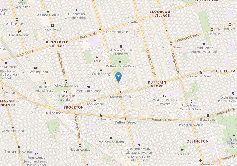 Please visit Youtube for video - Renovated, bright and spacious 1 bedroom + sunroom apartment with 400 Sq. Ft. deck situated on a tree-lined street decorated with impressive Victorian and Edwardian-style homes. Approximately 1000+ sq. ft. of living space on 2rd floor of house. INCLUDES MONTHLY CLEANING SERVICES. Large, modern, eat-in kitchen with reclaimed wood table, access to private deck. Spacious bedroom, living room and bathroom with ample closet and storage space. Hardwood flooring, A/C and laundry facilities on site. Kitchen features quartz countertops, large island and stainless steel appliances: stove, fridge, dishwasher and microwave. Street permit parking. Walking distance to a vibrant social and retail area, restaurants, coffee shops in Little Italy, YMCA, Dufferin Grove Park Organic Market, and steps to TTC. Ideal for professionals, perfect for a couple. $3,195, hydro extra. Available April 1st Non-smokers ONLY and no pets.