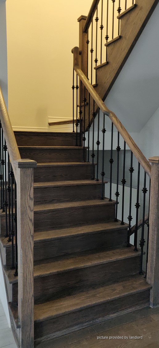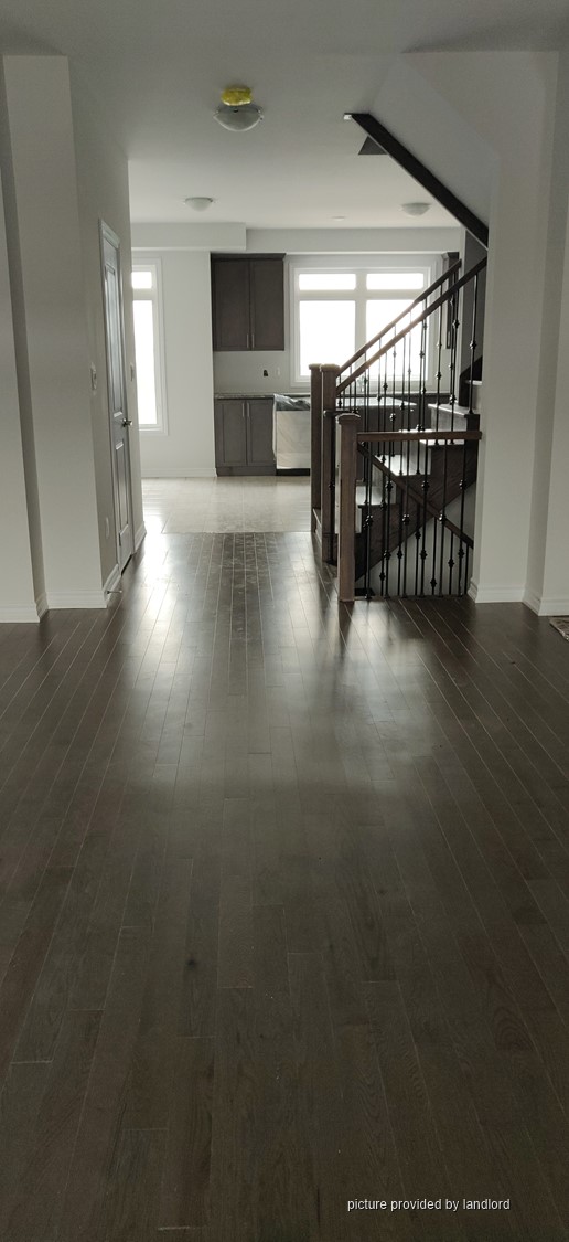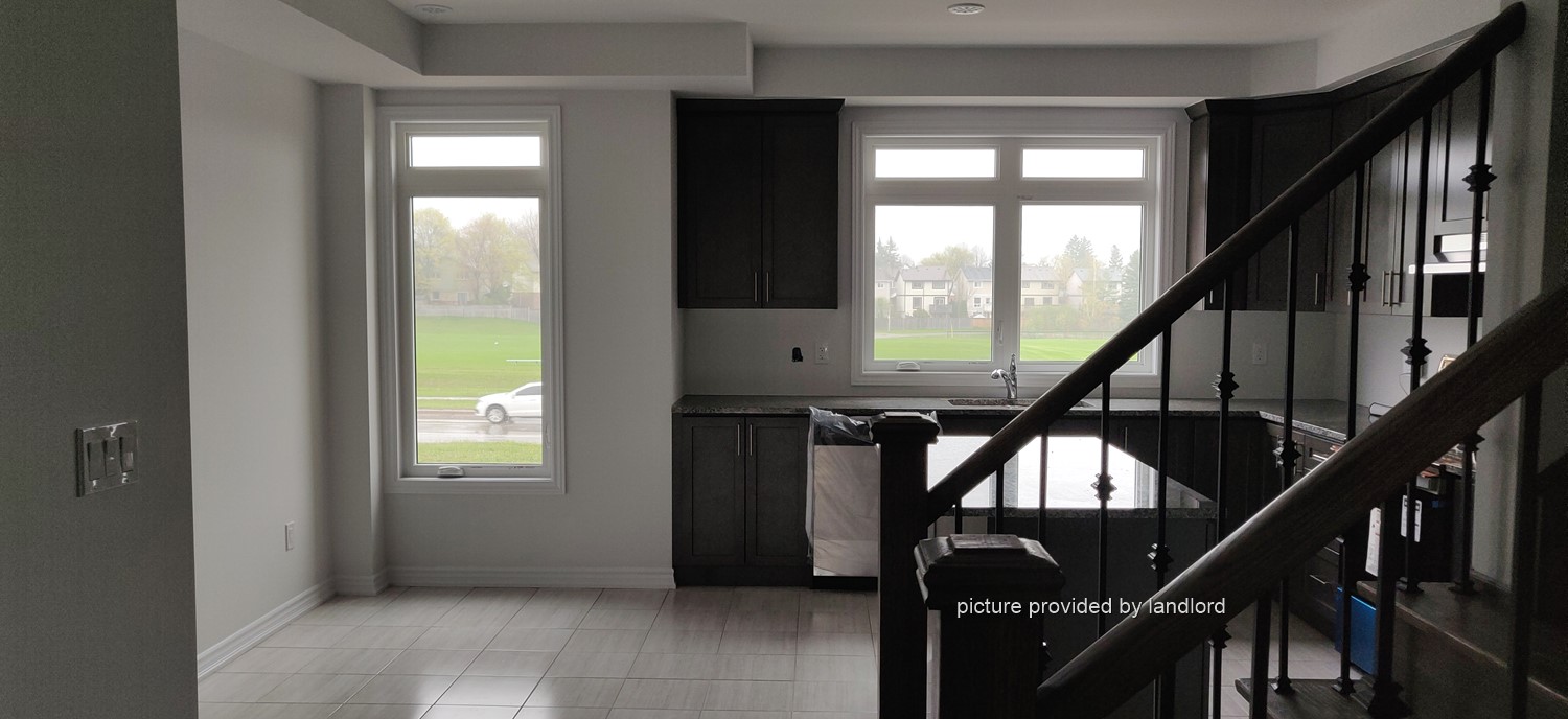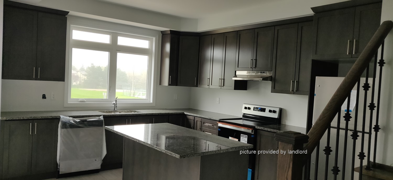 Stainless steel appliances, hardwood flooring in all areas except bedrooms. Great location, steps from transit, markets, restaurants, banks and many conveniences like doctors, dentists, LCBO, Beer Store, pharmacies, etc. Next door to trails,city library and community center. Private laundry and 2 car parking (1 indoor),plus heating, air filter, AC, tankless water heater (rental) with a private covered balcony. Kitchen with granite counters, backsplash, all stainless steel appliances incl. dishwasher. Large windows provide lots of natural light and energy. Private community with lots of privacy with access to parks,playgrounds, fields, trails, lake and conservation areas. Spacious bedrooms with Master ensuite with glass shower, large walk-in closet. Laundry on 2nd floor. Utilities are 60% (shared with the 2nd unit).
