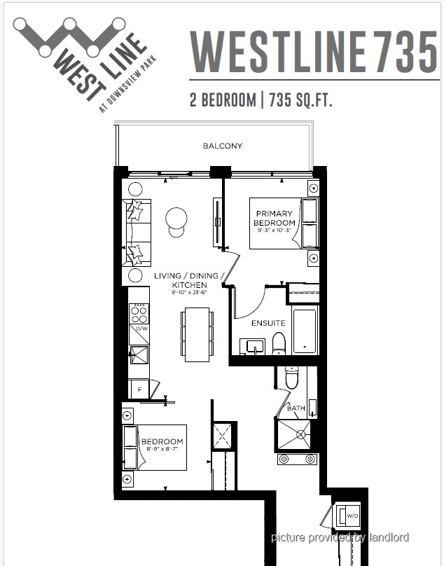 1 Year old 2 bedroom, 2-bathroom condo at WestLine Condos. Toronto. With 735 sq.ft. of modern living space. 1 underground parking spot INCLUDED..
