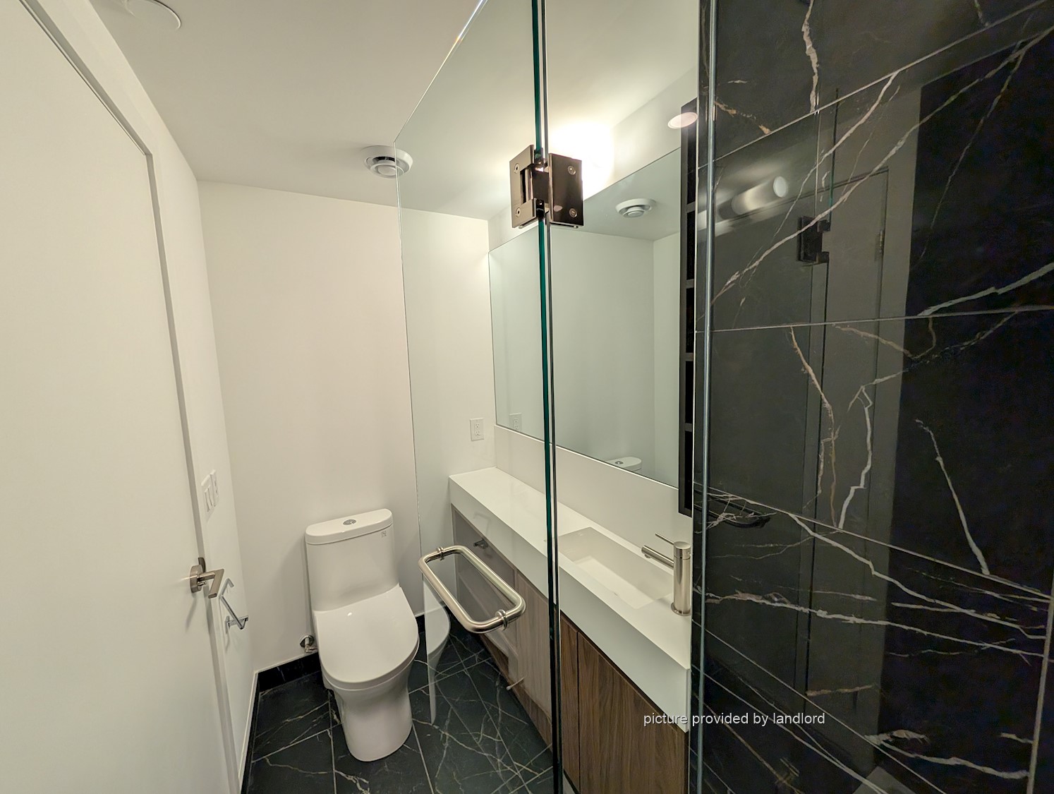 • Second full bathroom with a glass-enclosed shower.