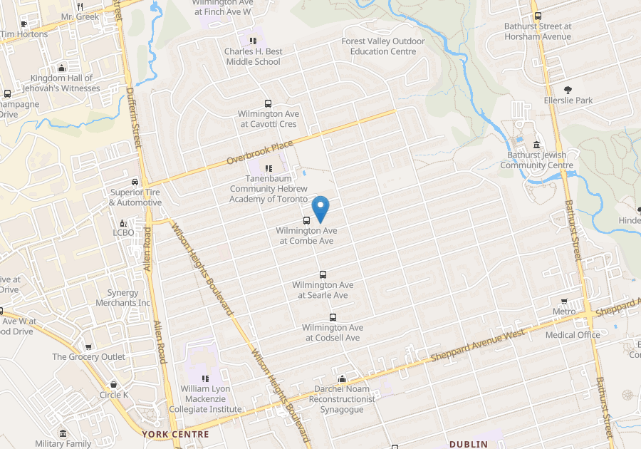 from transit, a quick 5-minute bus ride to Sheppard West subway station