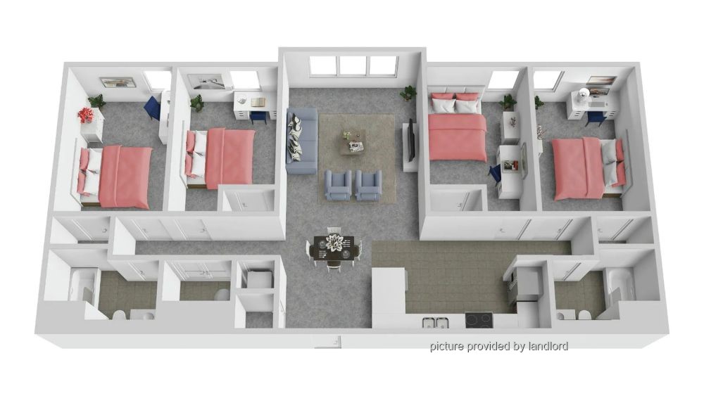 - 1 private bedroom and shared washroom in a 4 bed 2 bath apartment unit