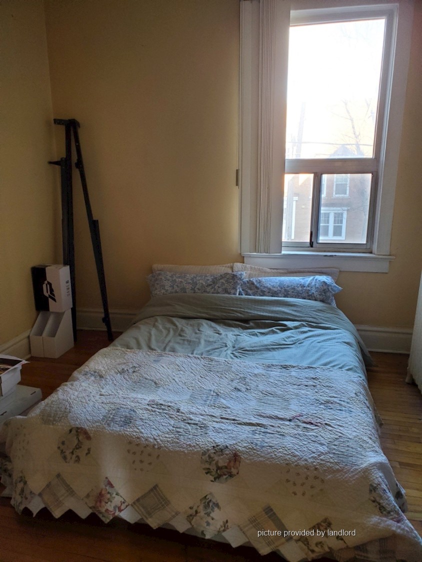 Amenities include a very large shared back yard, a nice front porch overlooking Sunnyside Ave., a washer/dryer unit in the basement, and storage space in the basement. Street parking is available. The landlord pays hydro.