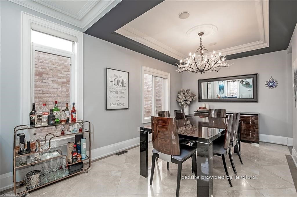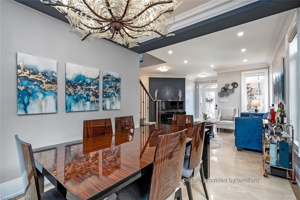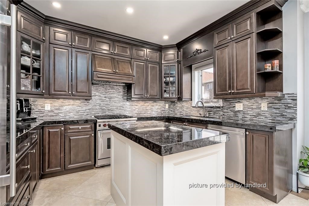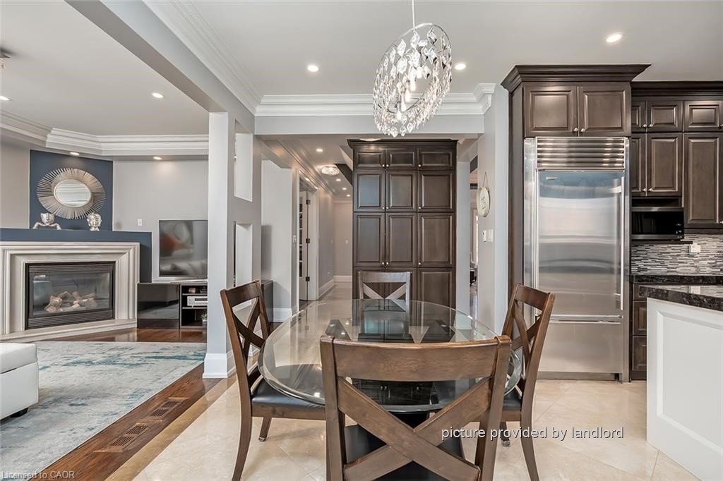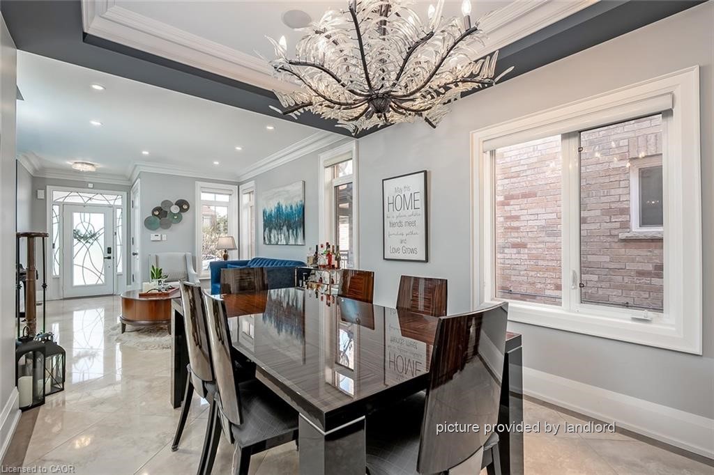 Stunning approximately 3,000 sq ft Executive Home featuring 5 bedrooms and 5 bathrooms, ideally located in sought-after Churchill Meadows. This impressive residence offers a spacious open-concept layout with 9-foot ceilings throughout the main level.The main floor showcases a private office, convenient laundry room, and a generous family room complete with a cozy gas fireplace. The chef-inspired custom eat-in kitchen is a true highlight, equipped with high-end appliances including a Wolf stove and Sub-Zero fridge, ample cabinetry, granite counters, a centre island, pantry, and a walk-out to the beautifully landscaped backyard. Elegant heated limestone flooring on the main level, complemented by hardwood flooring in the family room and throughout the upper level, adding warmth and sophistication.Upstairs, you'll find five well-appointed, spacious bedrooms all with custom closet organizers and 3 full bathrooms. The primary suite offers a luxurious retreat, featuring a spa-like ensuite with a soaker tub, his and her sinks and a large walk-in closet.The fully finished basement is designed for entertaining, boasting a large recreation room, wet bar, oversized windows, art niches, and a dedicated exercise area. A stunning spa-inspired California shower completes this exceptional lower level.Outside, enjoy a professionally landscaped yard + inground sprinkler system-perfect for relaxing or entertaining. This home is loaded with premium upgrades, including pot lights, crown moulding, smooth ceilings throughout, custom lighting, oversized custom doors, California shutters, built-in speakers on main floor and so much more.This is an Absolute Showstopper.