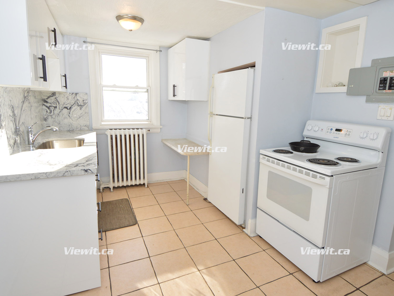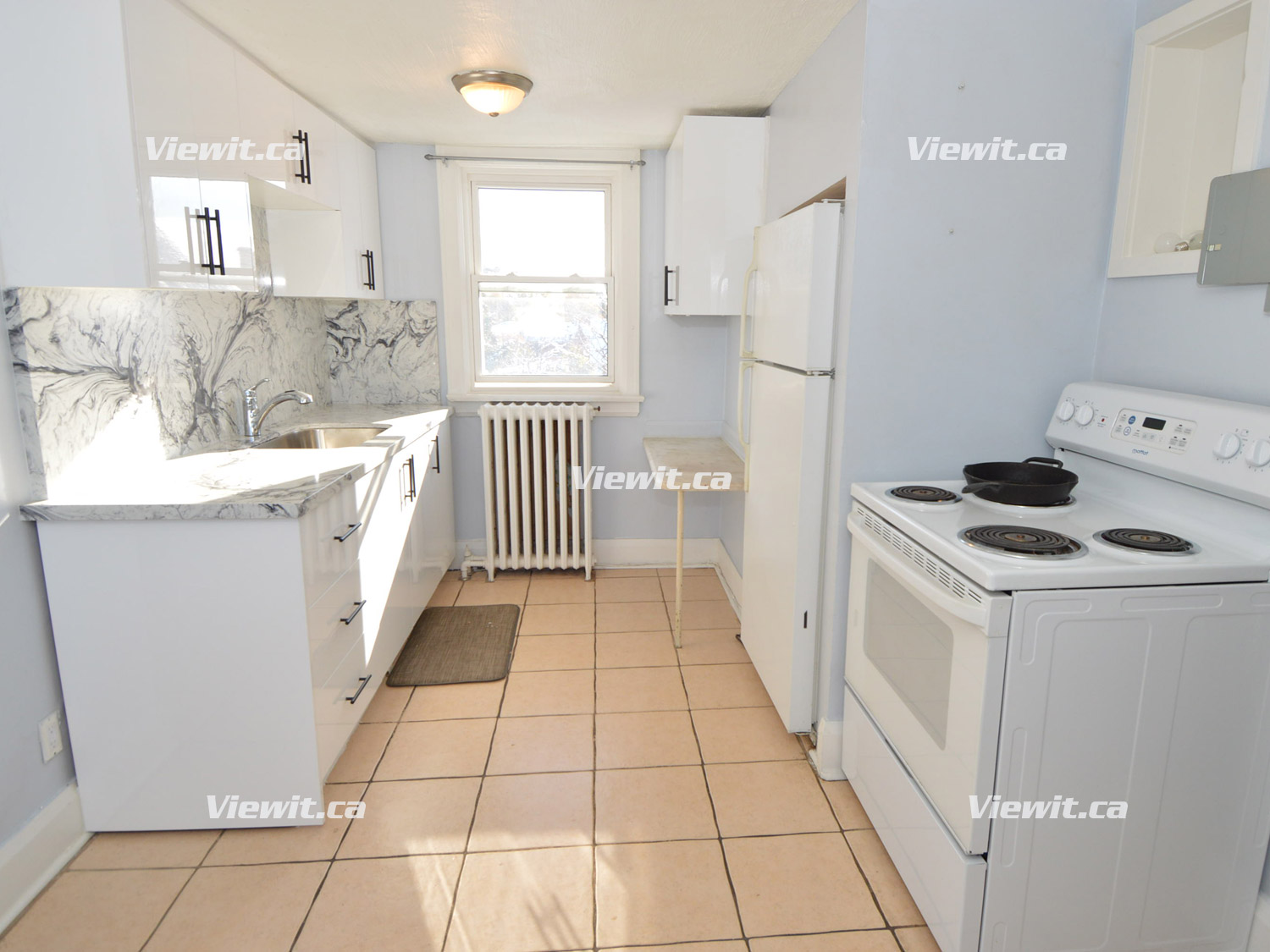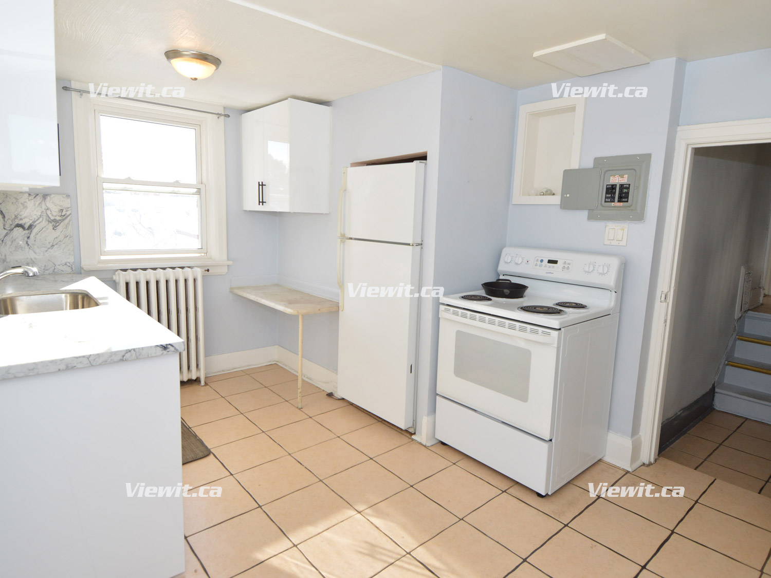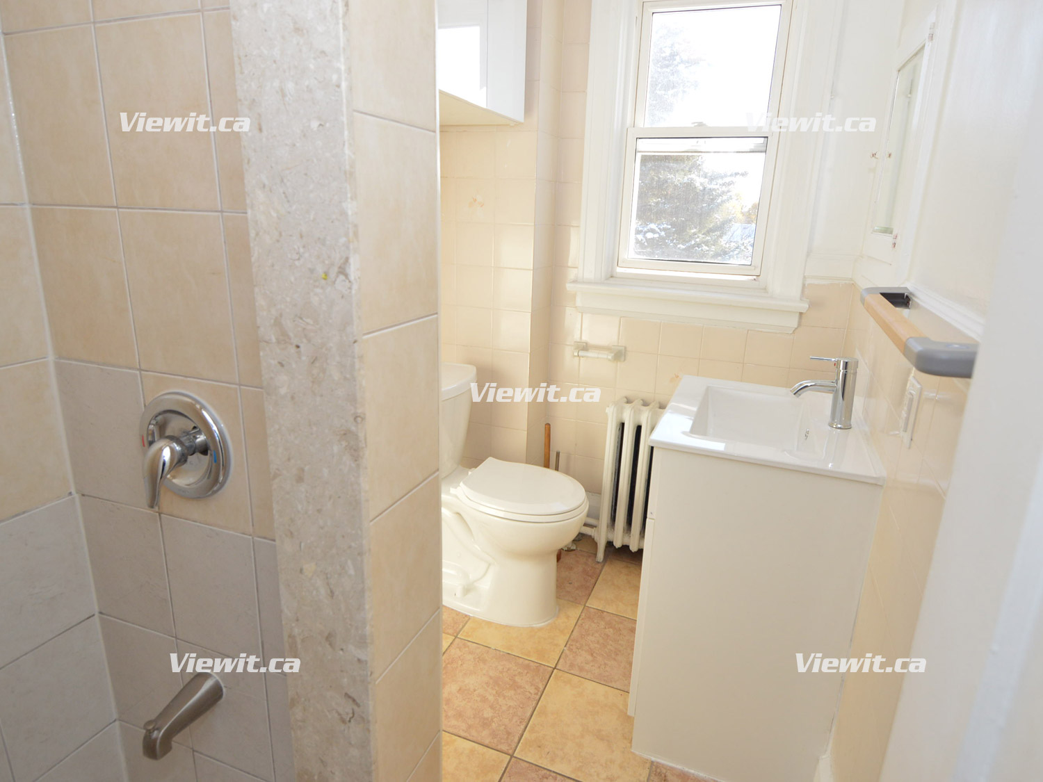 Newly Renovated 3rd floor apartment. 2 bedrooms + 1 bathroom, full kitchen and Living area with fridge and stove. Tiles and wood flooring throughout. Good-sized bedrooms, one parking spot Included. Access to private outdoor space.