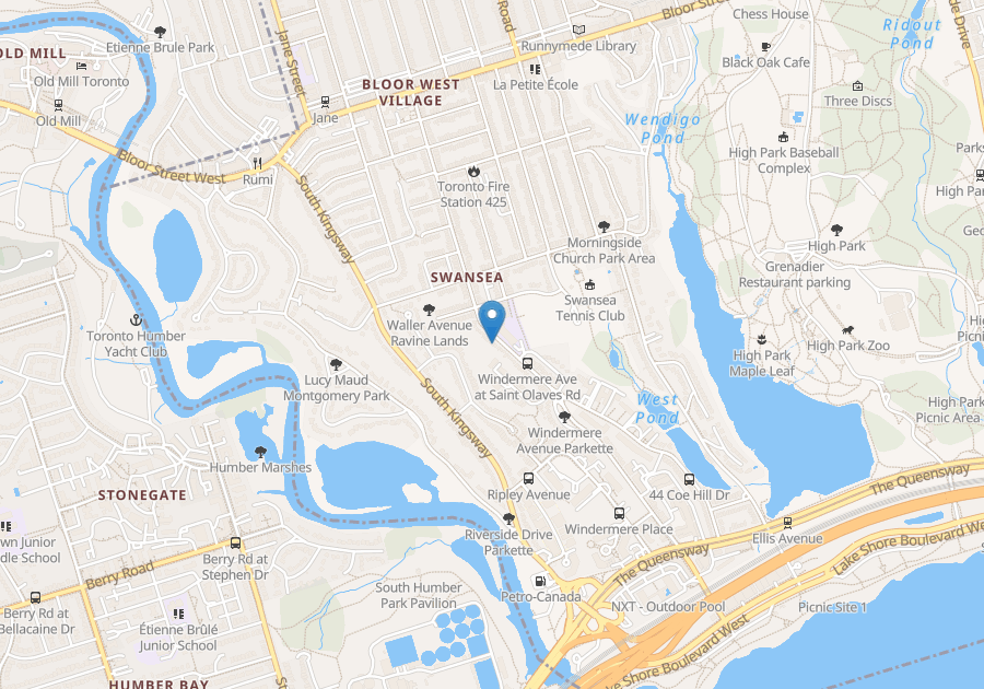 • TTC: “77 Swansea” bus stop at Windermere Ave and Morningside Ave is a 2min walk; northbound connects to subway Runnymede Station, Bloor-Danforth Subway Line 2, or southbound connects to The Queensway with streetcar “501 Queen” and bus “80 Queensway”.