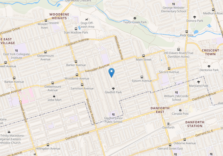 Easy access to DVP. 3 Minute walk (or 400 metres) to Woodbine subway station and Danforth Ave.