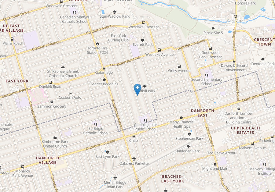 Gledhill Jr. PS. A short stroll to Groceries, Banks, Danforth shops and