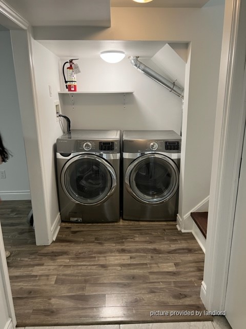 Main features: • All safety and fire regulations approved by the city of Toronto •Separate entrance • Entrance with den and laundry & dryer • 2 large bedrooms with windows and closets • Kitchen with stove, fridge, microwave.